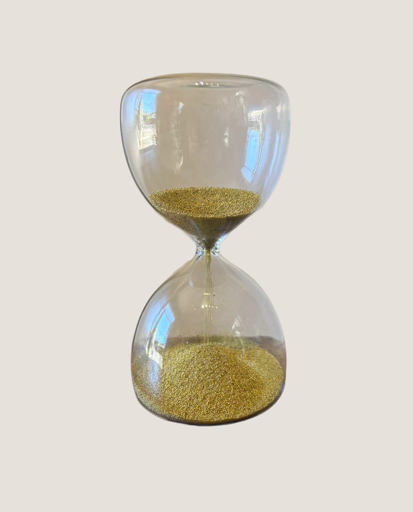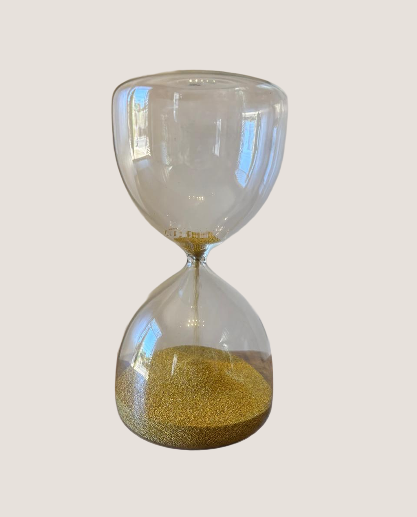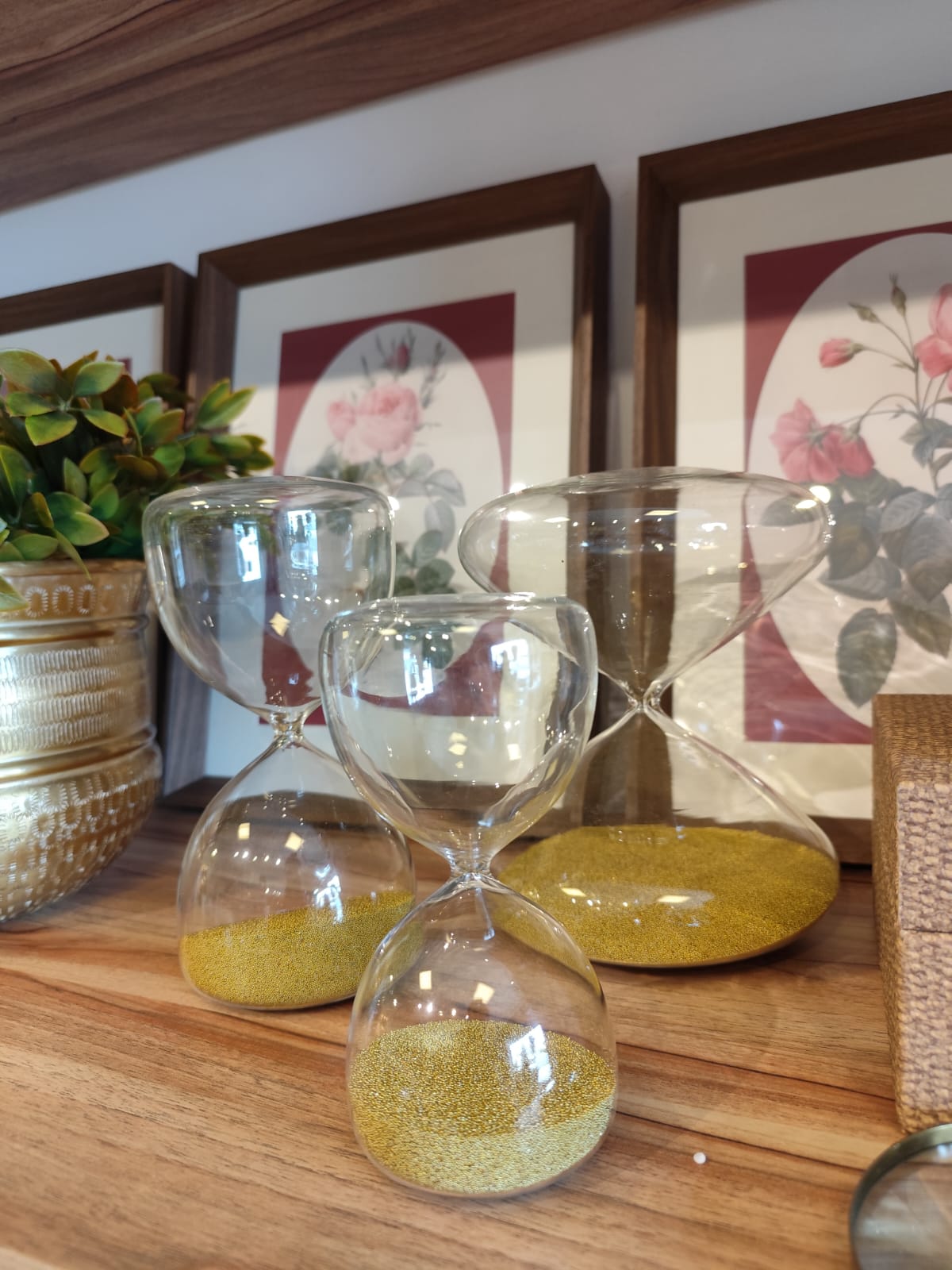 Ampulheta Gold é uma peça decorativa sofisticada que combina funcionalidade com elegância. Confeccionada em vidro transparente de qualidade, apresenta um mecanismo clássico onde pequenas bolinhas douradas substituem a tradicional areia, criando um efeito visual luxuoso e contemporâneo. Ideal para ambientes que valorizam design refinado, esta ampulheta funciona como marcador de tempo enquanto adiciona um toque de sofisticação à decoração. Perfeita como presente ou complemento decorativo para escritórios, salas de estar e espaços que apreciam objetos com estilo e propósito., perfeita para ambientes como escritório ou escrivaninha do quarto.