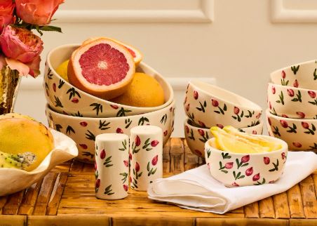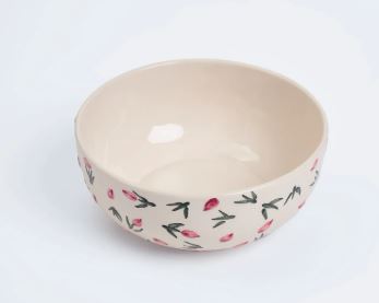 Bowl estampado feito em cerâmica na cor creme com detalhes da estampa verde e rosa. Ideal para quem adora deixar a mesa ainda mais bonita.