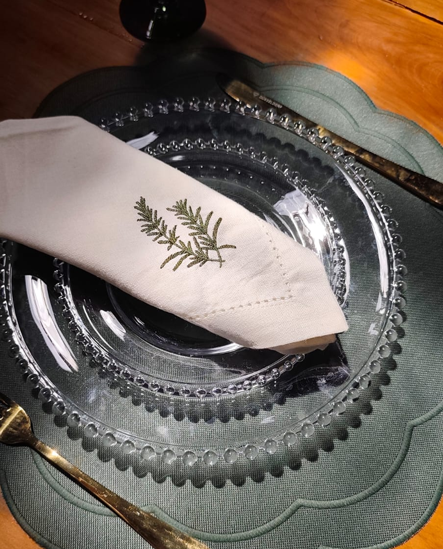 Traz sofisticação e charme à sua mesa posta. Confeccionado em tecido claro de alta qualidade, ele possui acabamento delicado com bordado de ramo verde, que adiciona um toque natural e elegante.