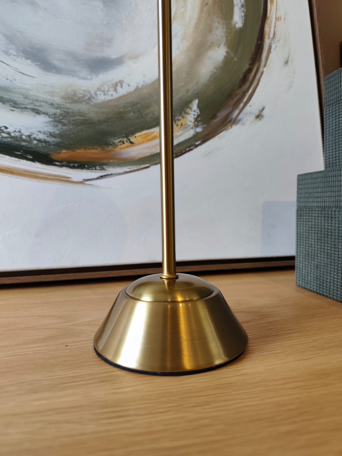 Luminária em metal dourado com design moderno e elegante, unindo base ampla, cúpula refinada e pescoço alongado que cria uma silhueta leve e sofisticada. Equipada com luz LED USB, oferece praticidade para uso diário. Seu toque especial está no acendimento por toque na própria cúpula, permitindo ajustar facilmente entre 3 níveis de intensidade. Ideal para criar desde uma iluminação suave e acolhedora até uma luz mais forte para leitura. Uma peça funcional, contemporânea e cheia de estilo para qualquer ambiente.