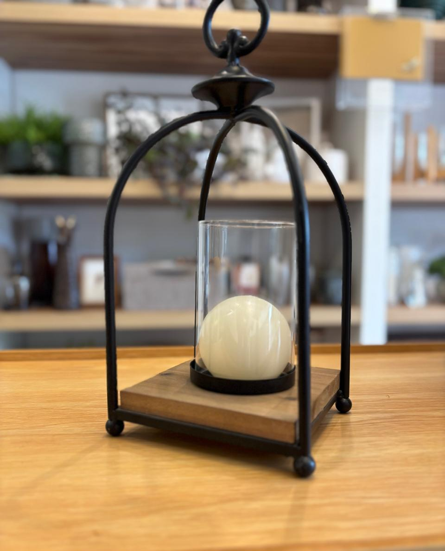 Une o charme do design industrial ao toque acolhedor da madeira natural. Com estrutura em ferro preto, base de madeira e um vidro cilíndrico para colocar velas, ela é uma peça versátil e sofisticada para compor qualquer ambiente.