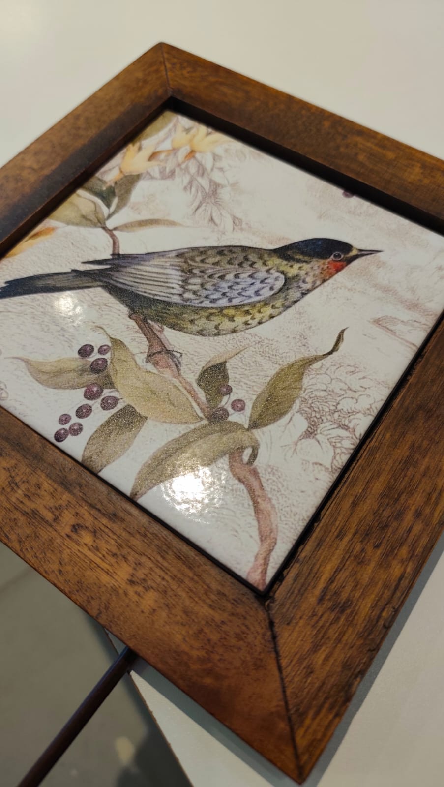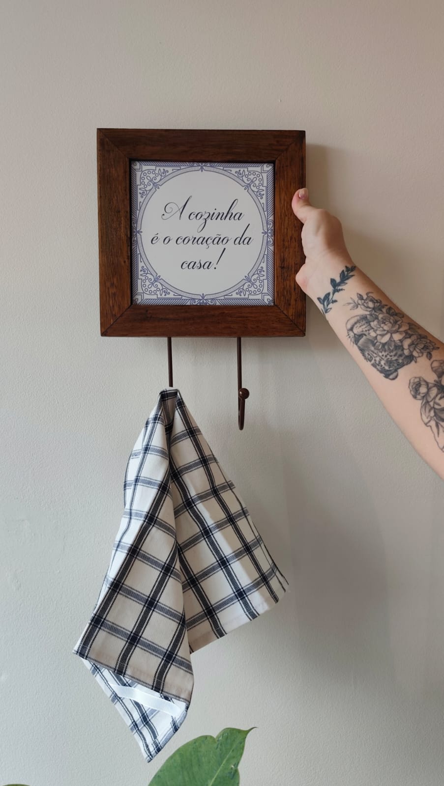 Uma peça que decora e organiza sua casa. Pode ser usado na cozinha, quarto, lavabo ou lavanderia. Possui moldura em madeira com azulejo na parte interna. Metragem do quadro 23X23. Metragem total com gancho: 33 cm altura X 23 de largura.