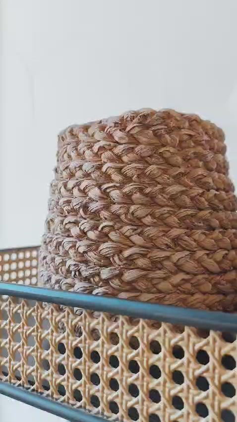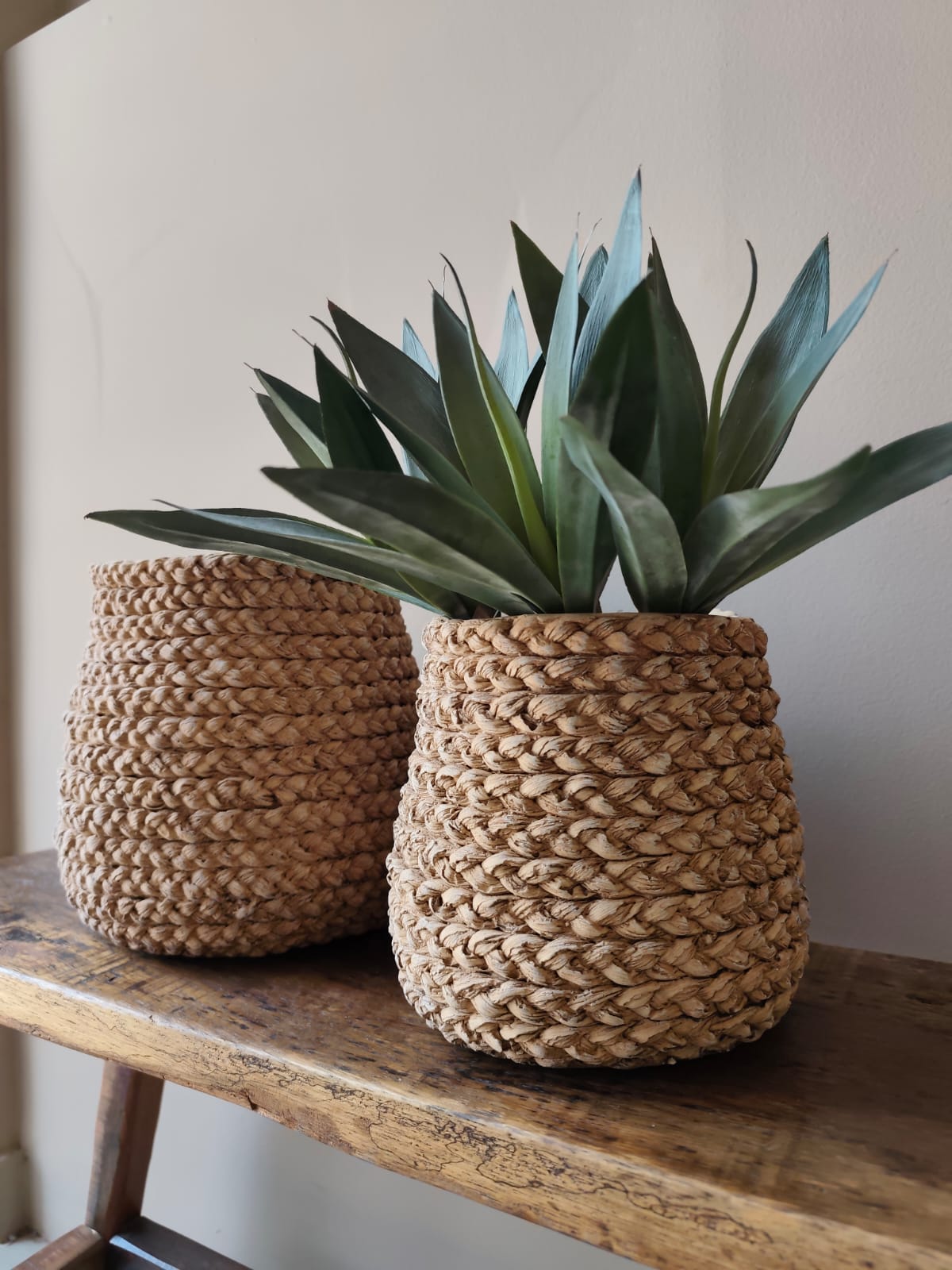 Vaso em cimento com trama rústica na cor bege que imita corda. Pode ser usado em ambientes internos ou externos. É ideal para plantas naturais.